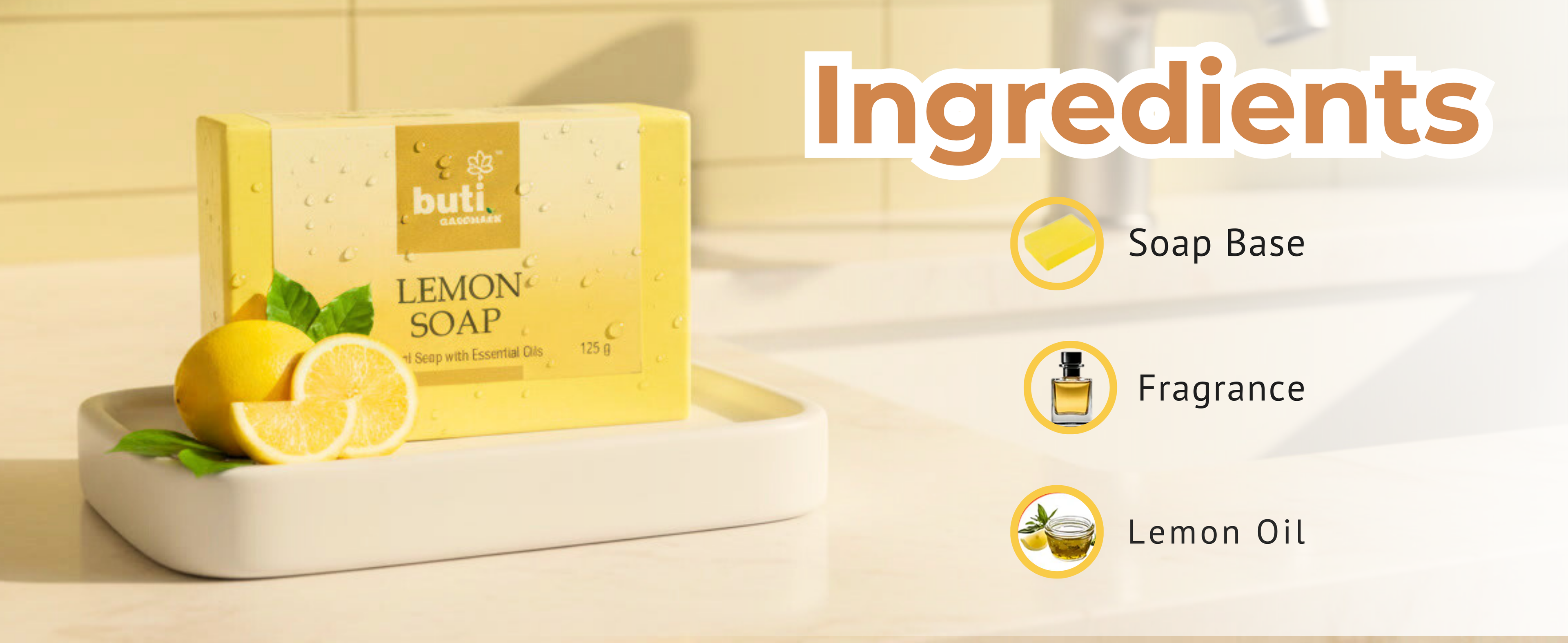 Soap Base, Fragrance, Aloevera Extract, Lemongrass Oil, Colour